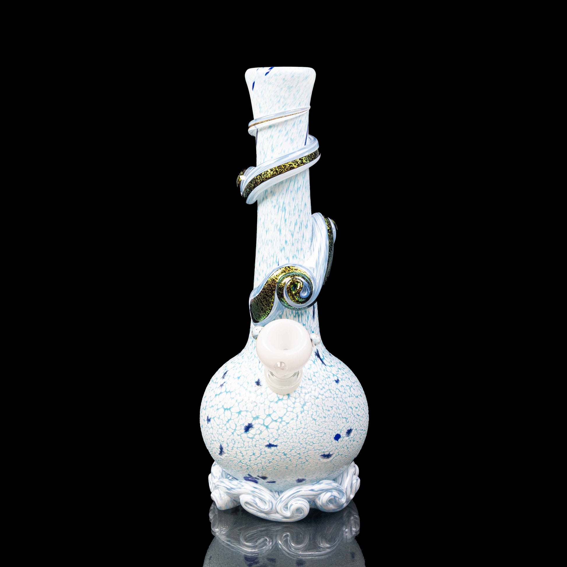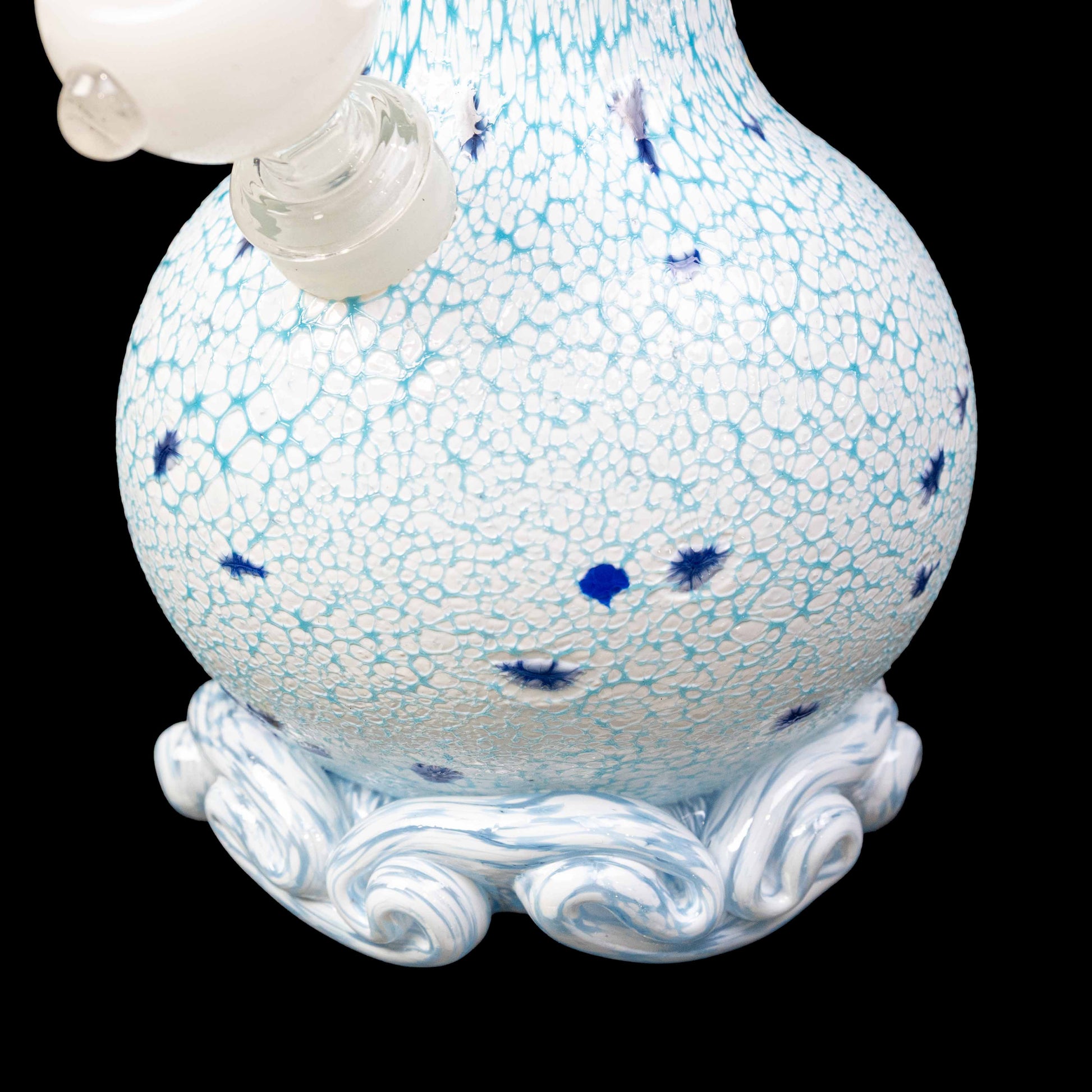 This beautiful bong features a white and baby/ ice blue 'powder crawl', which creates a stunning pattern and exquisite surface texture.