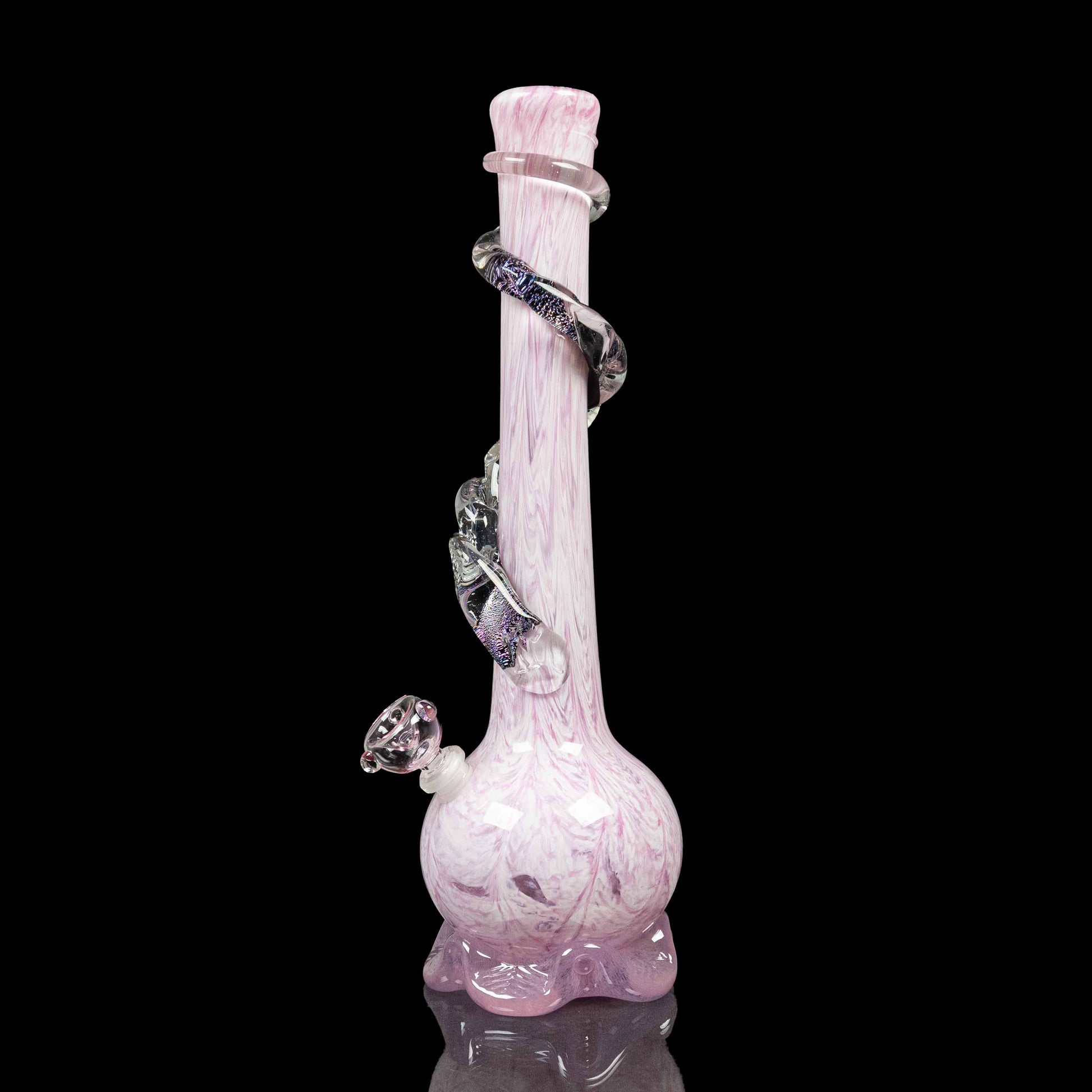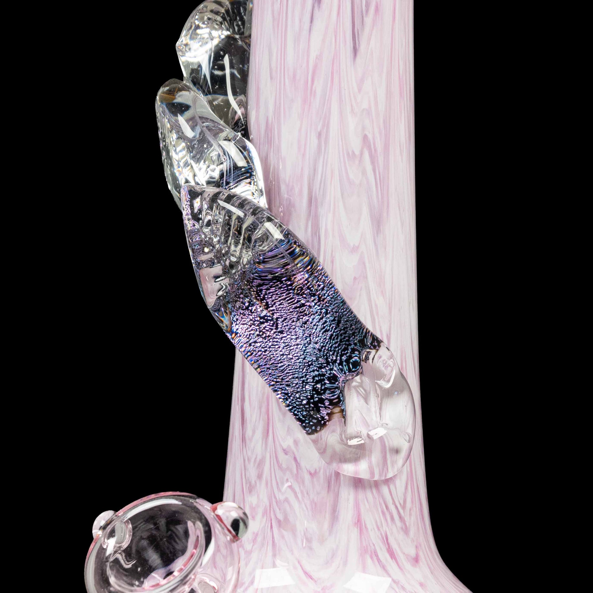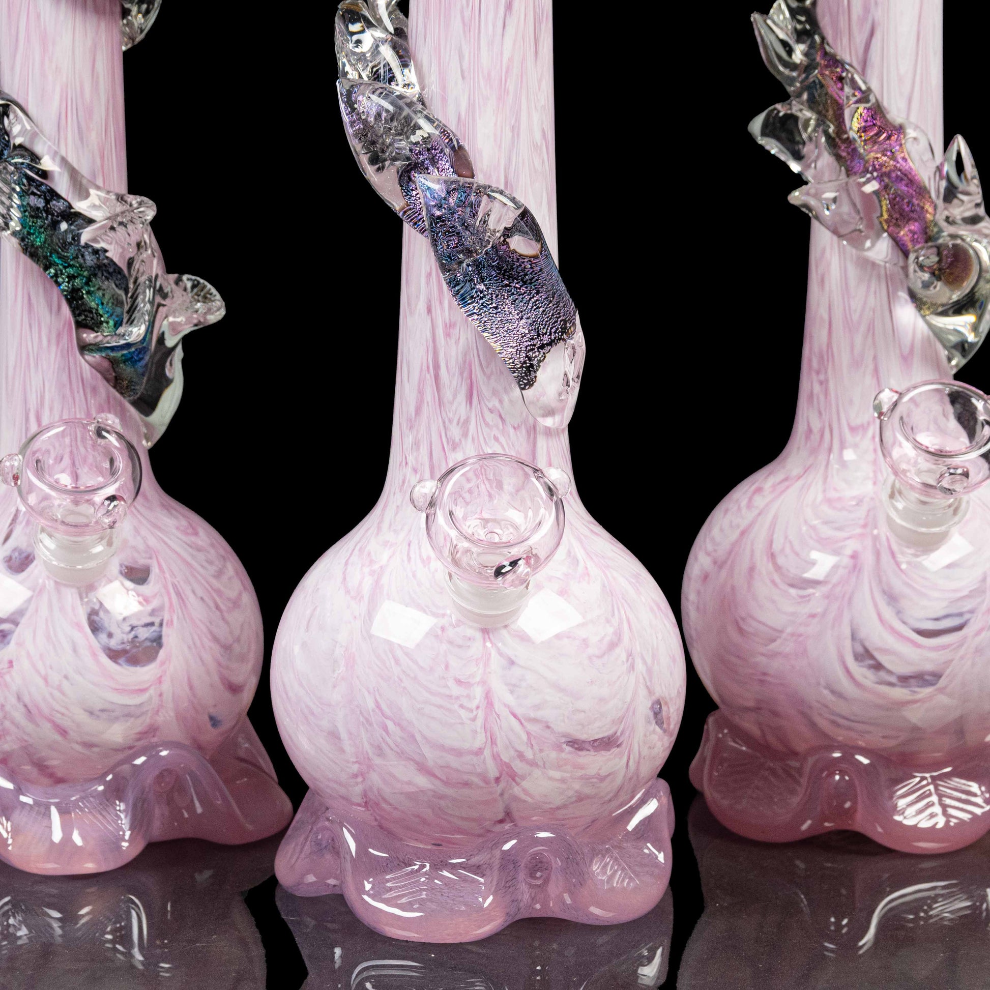 Nora was aptly named, after having a guest appearance on “Nora From Queens,” the Comedy Central show starring Awkwafina! We were contacted by the art department from the show, looking for unique, colorful bongs to fill out one of the display cases in the Bodega, after Nora takes over. This Awkwafina bong takes our most popular selling body color, Pink Pastel Lace, and adds a shimmering dichro wrap, as well as a thicker piece overall. Nora is truly a bong fit for a celebrity!