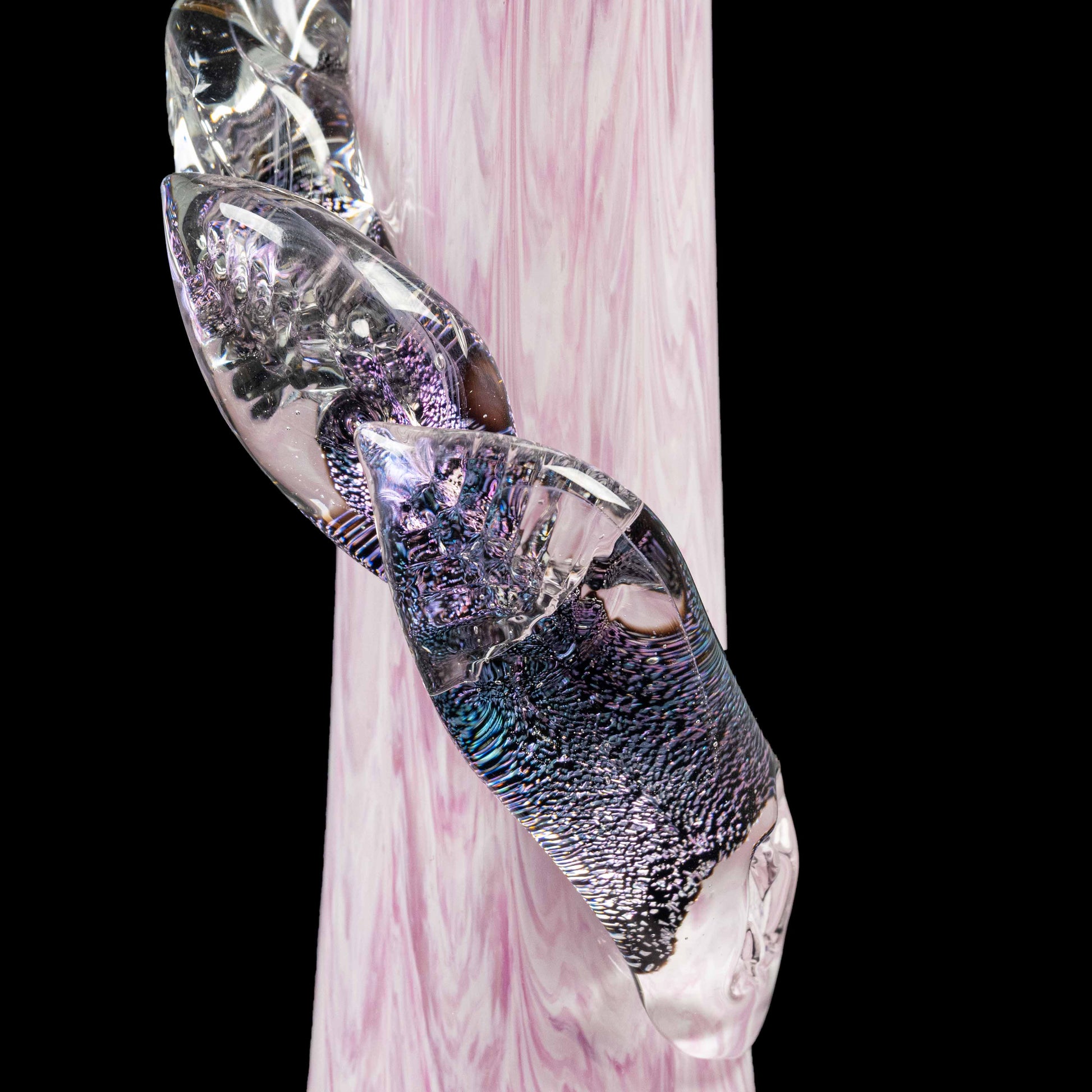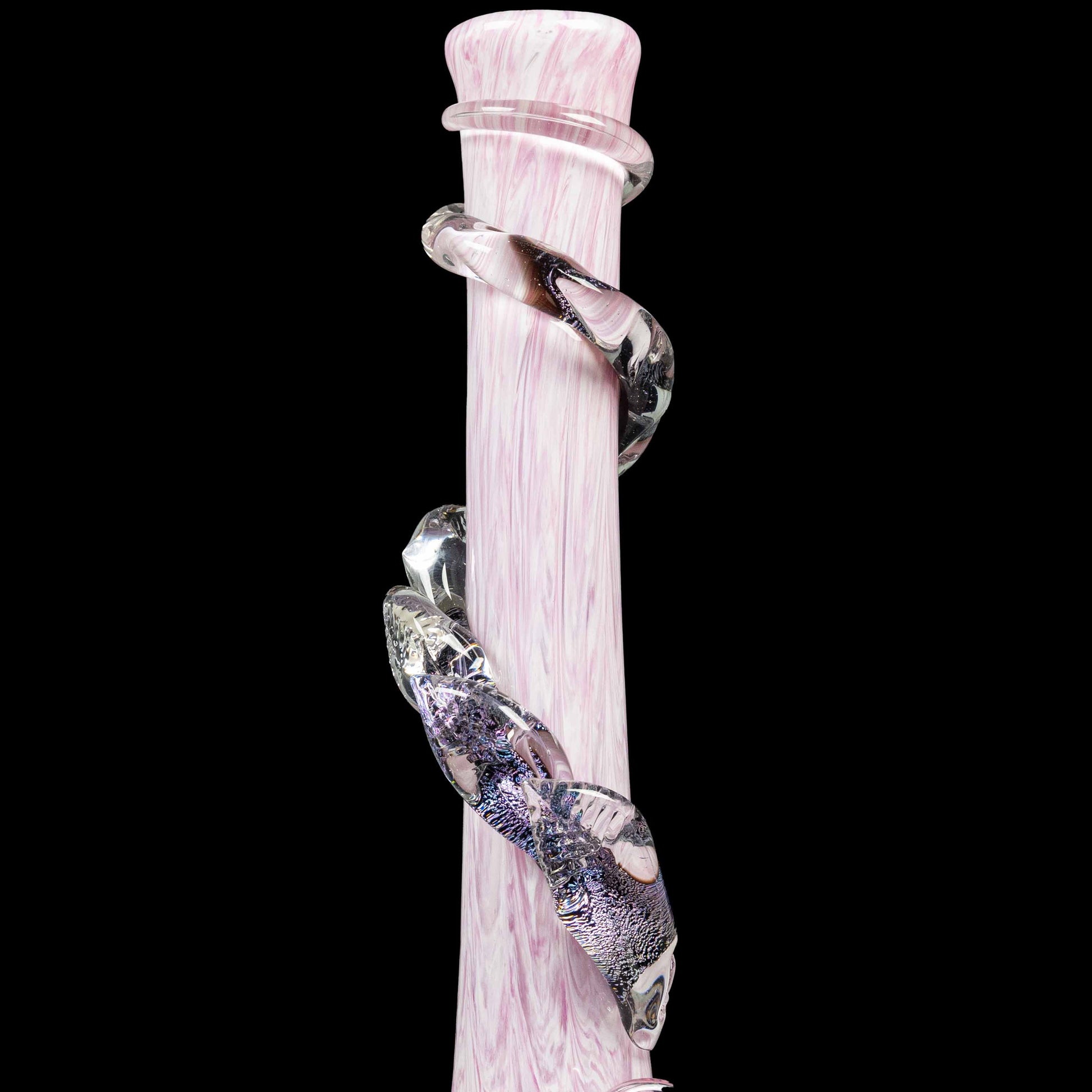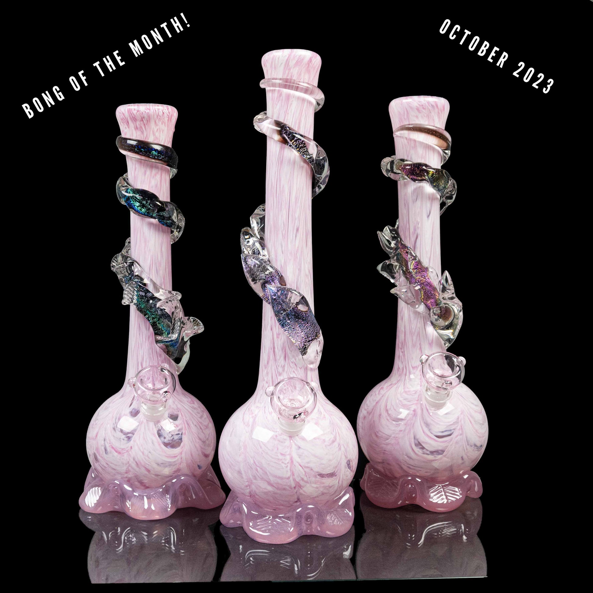 Nora was aptly named, after having a guest appearance on “Nora From Queens,” the Comedy Central show starring Awkwafina! We were contacted by the art department from the show, looking for unique, colorful bongs to fill out one of the display cases in the Bodega, after Nora takes over. This Awkwafina bong takes our most popular selling body color, Pink Pastel Lace, and adds a shimmering dichro wrap, as well as a thicker piece overall. Nora is truly a bong fit for a celebrity!
