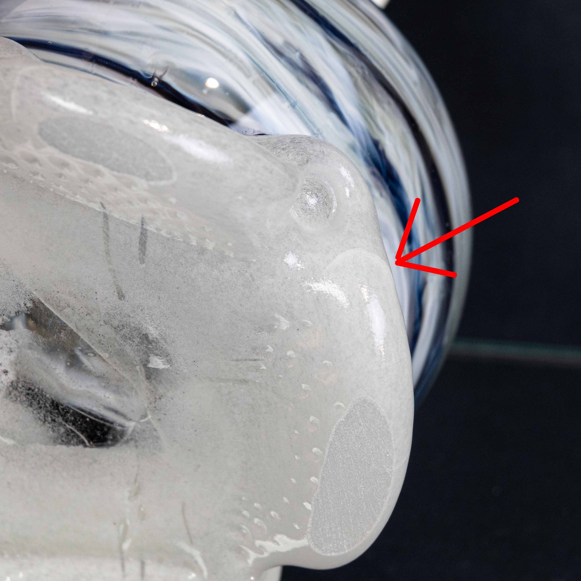 Flaw: This Piece has small 'check' cracks in the foot. The glow-in-the-dark color is very stiff, and occasionally will develop tiny cracks if not worked right