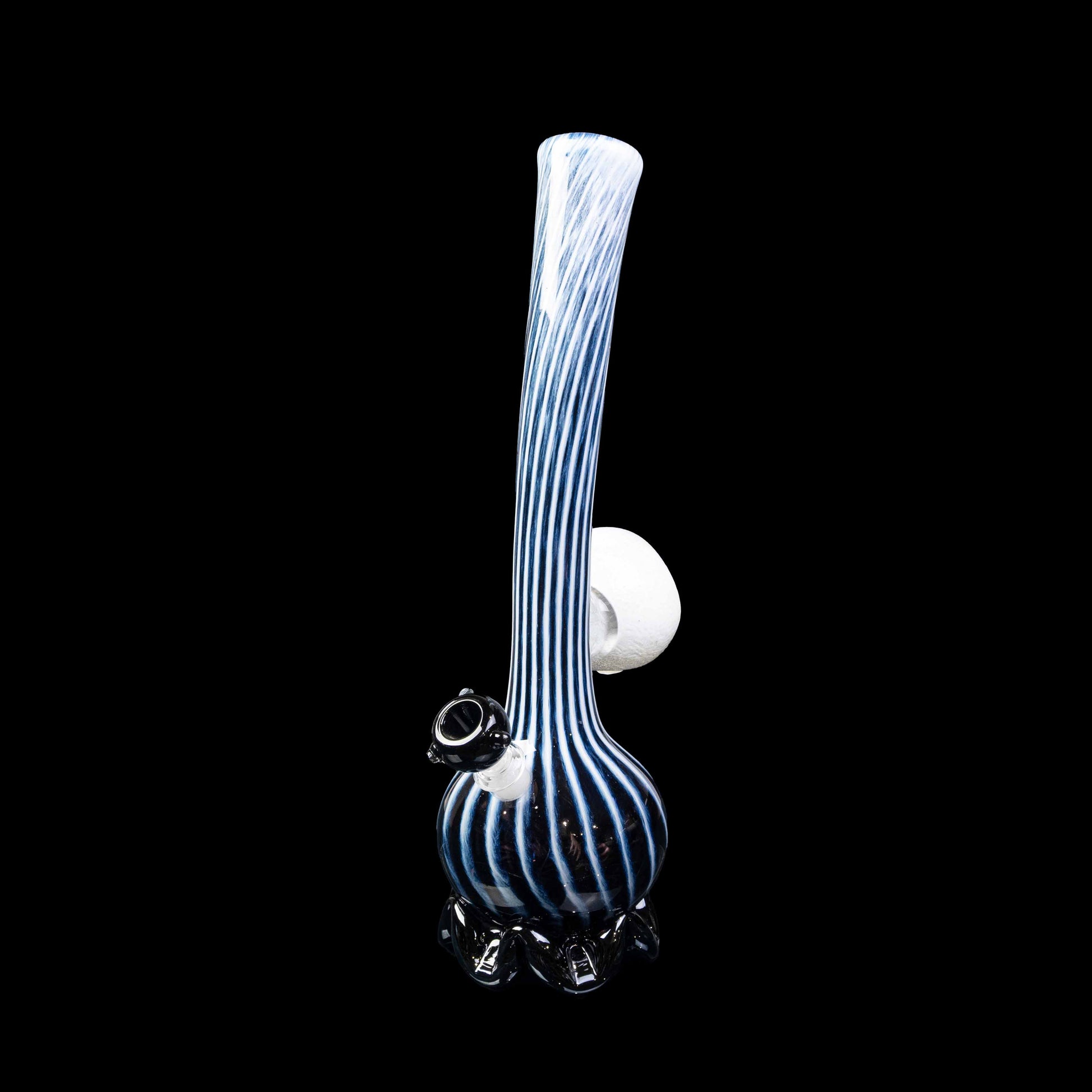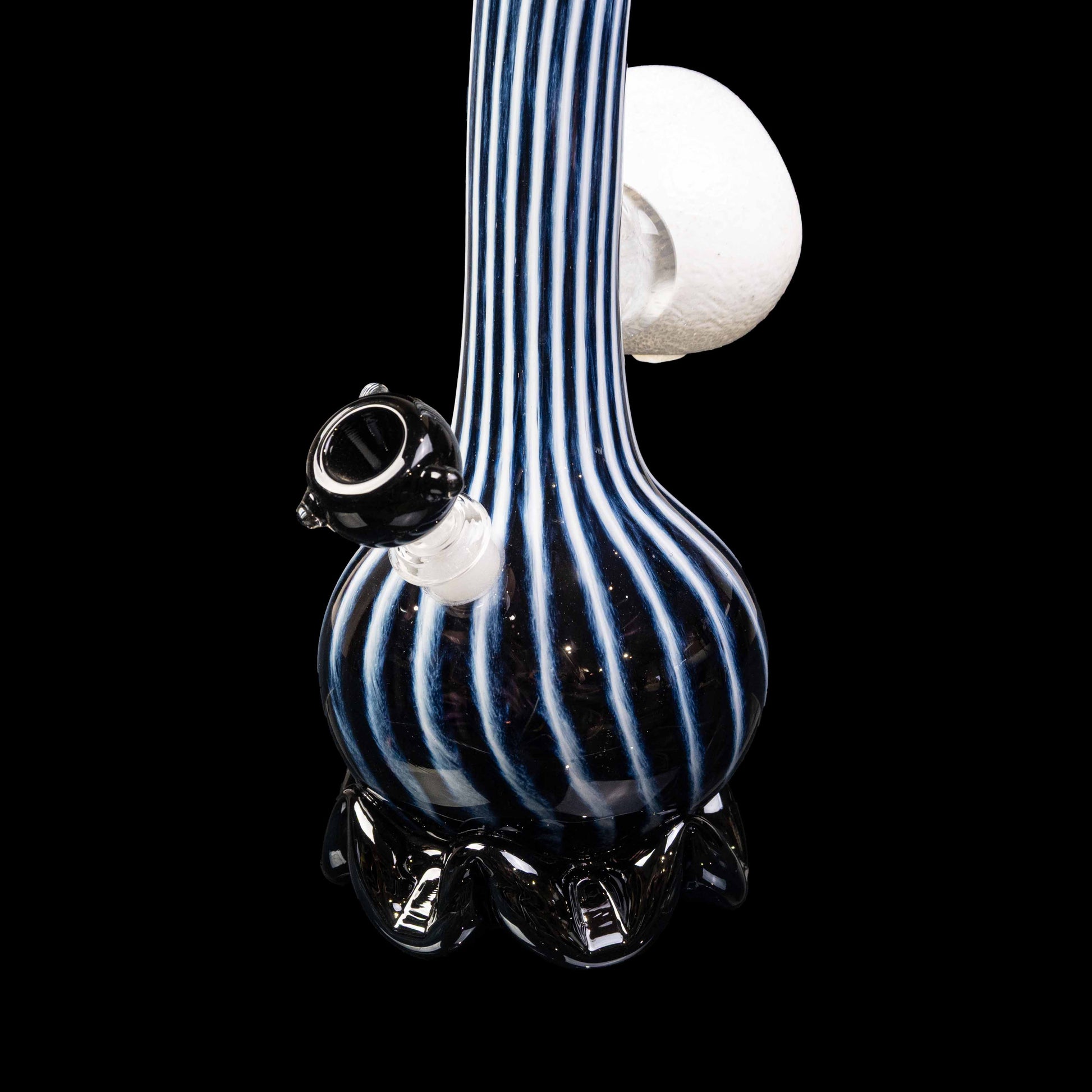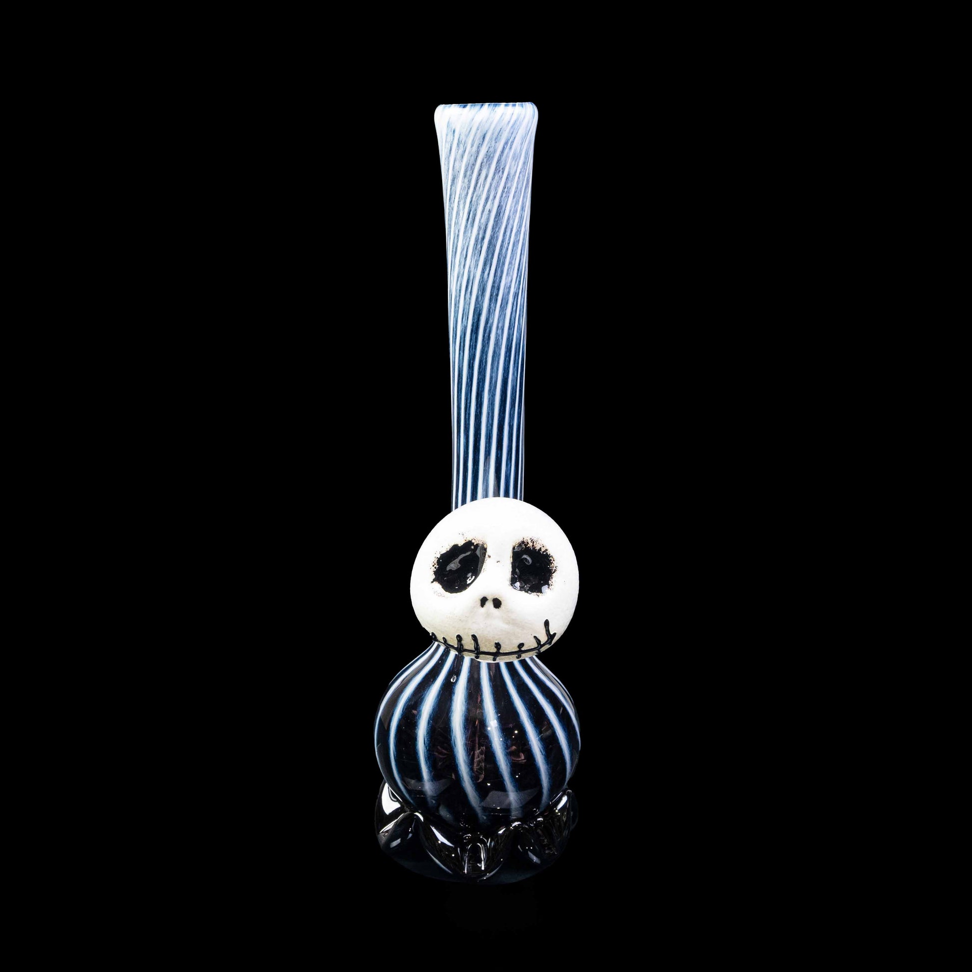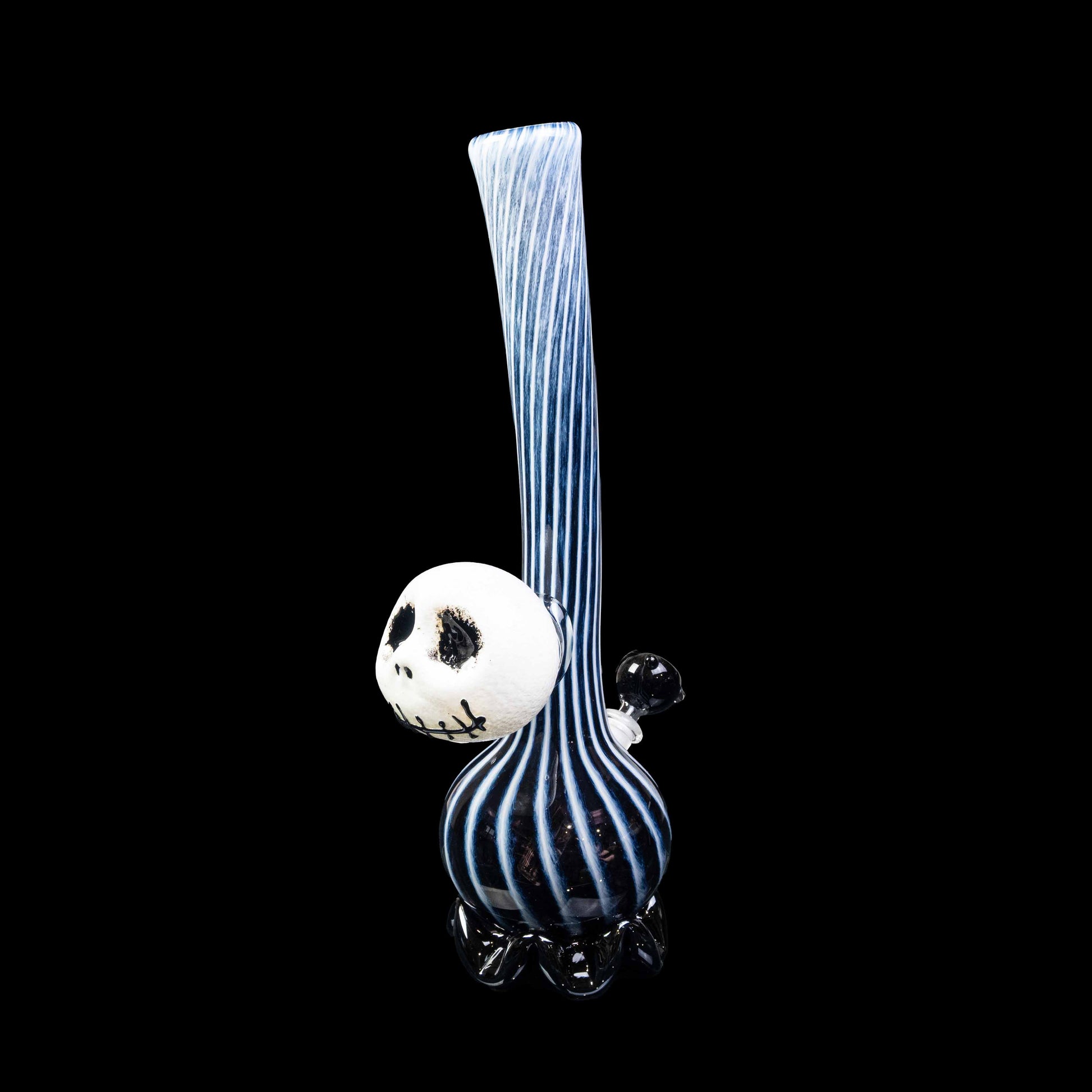 Jack is a Nightmare Before Christmas-inspired bong that brings spooky charm and holiday mischief together in one unforgettable piece. Hand-blown and sculpted with soft glass, this character-themed bong features bold black and white details that echo Jack Skellington’s iconic style, complete with hauntingly playful accents and a sculpted form that stands out in any collection. And what's more... He glows-in-the-dark! Perfect for fans of Tim Burton’s classic, this Nightmare Before Christmas bong captures the spirit of Halloween and Christmas all in one. Jack isn’t just a conversation starter—he’s a functional piece of glass art ready to add some spooky cheer to your setup.