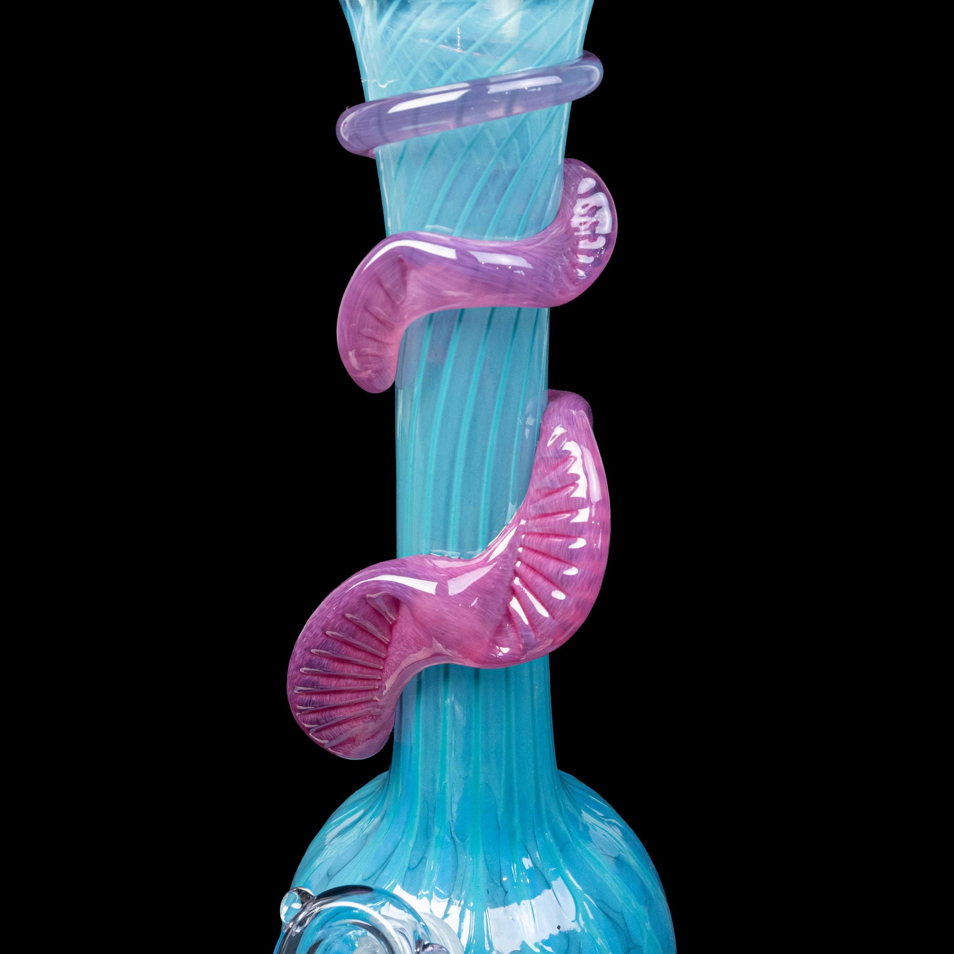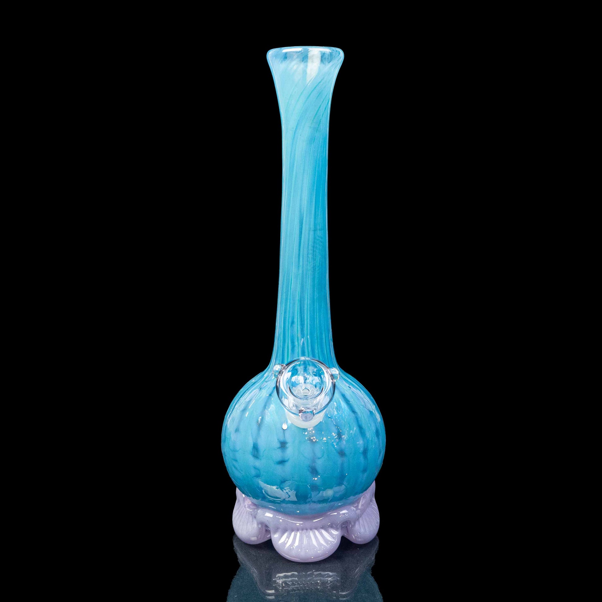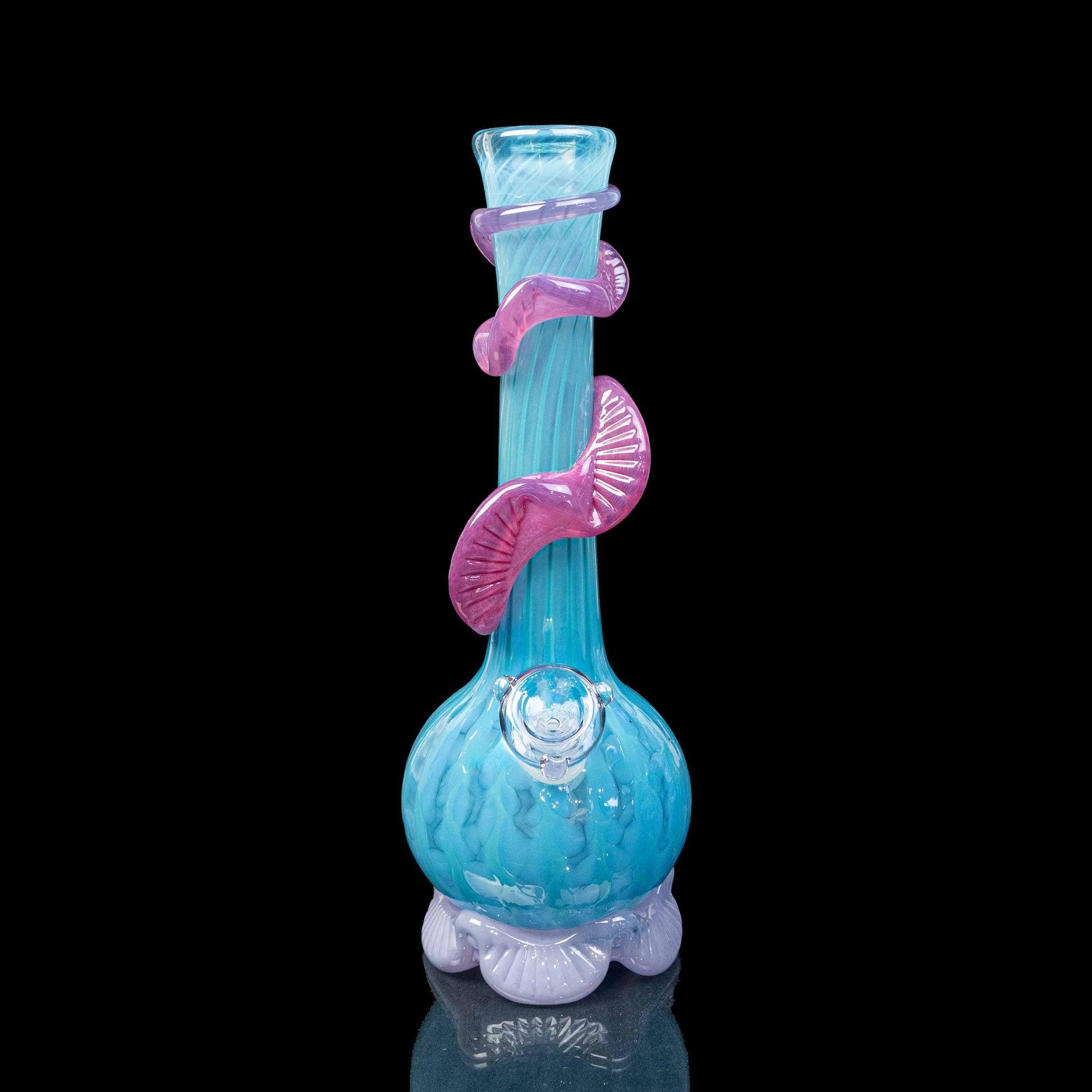 This Little Mermaid inspired bong is a dreamy ocean teal, lavender, and ruby, with soft pastel hues. It is one of the newest color combos to Noble Glass. Its elegant curves and sea-themed shimmer make it a charming, functional piece for anyone who loves mermaid vibes and life under the sea. It is handcrafted in the Original Soft-Glass Style.
