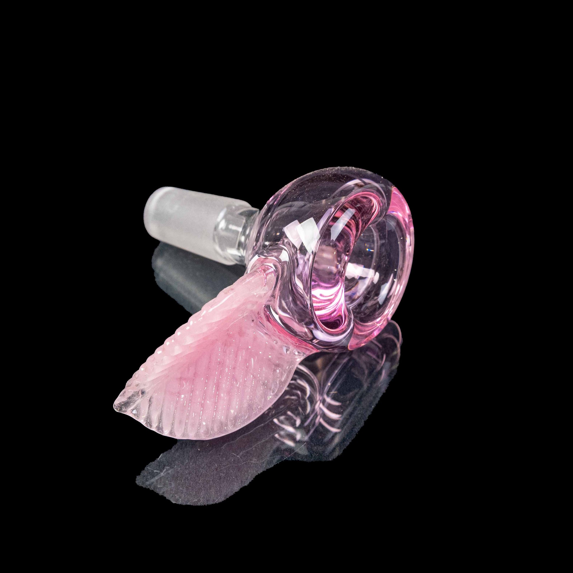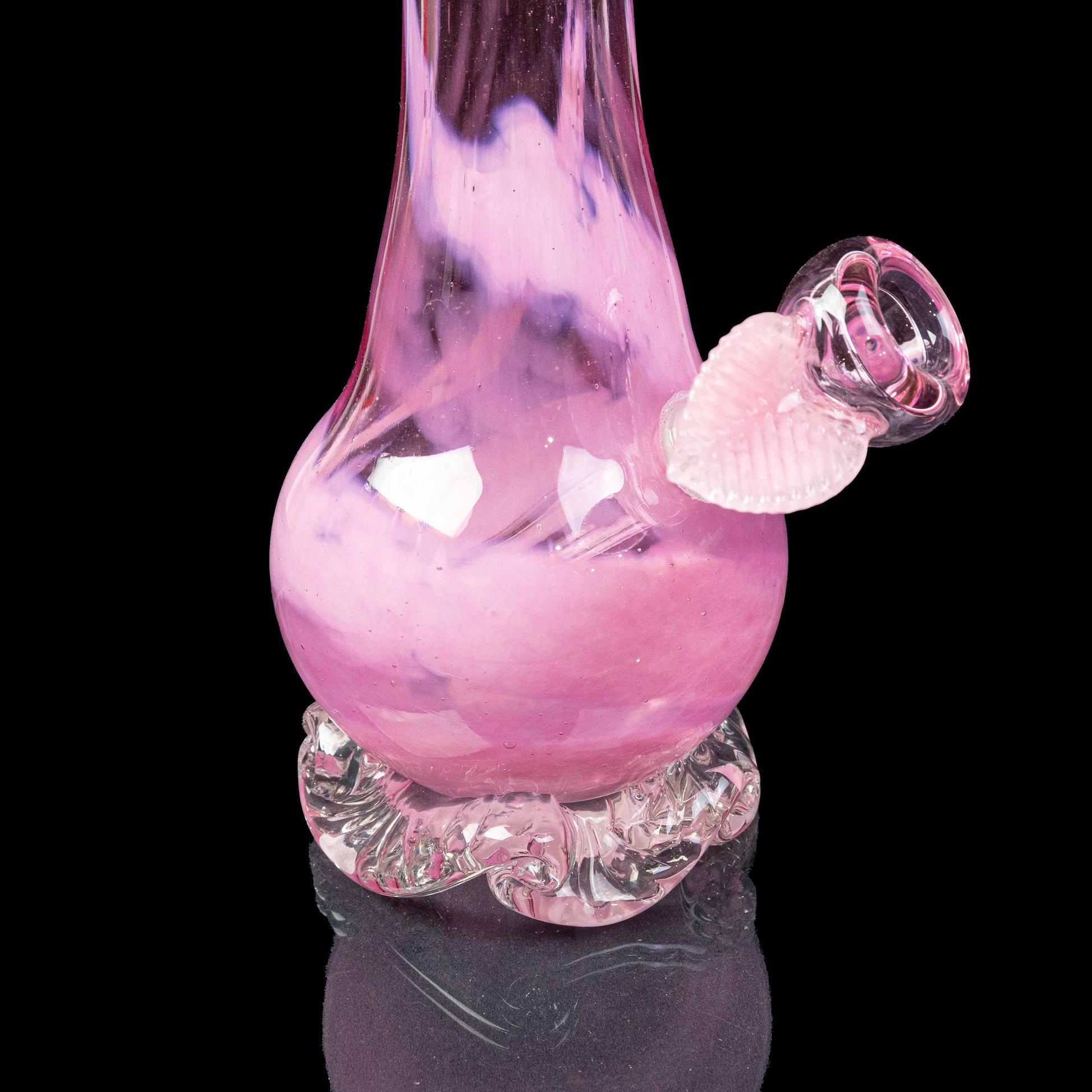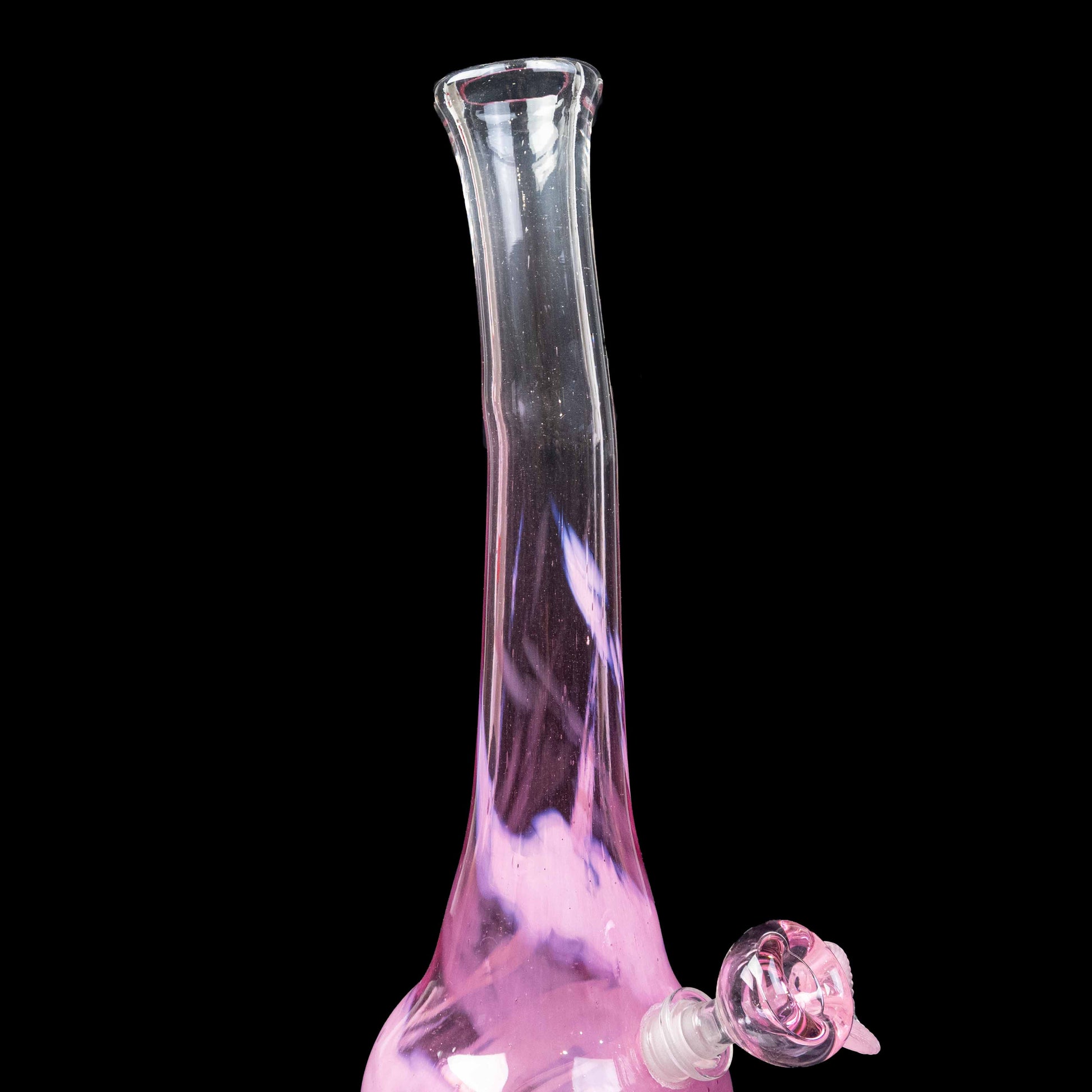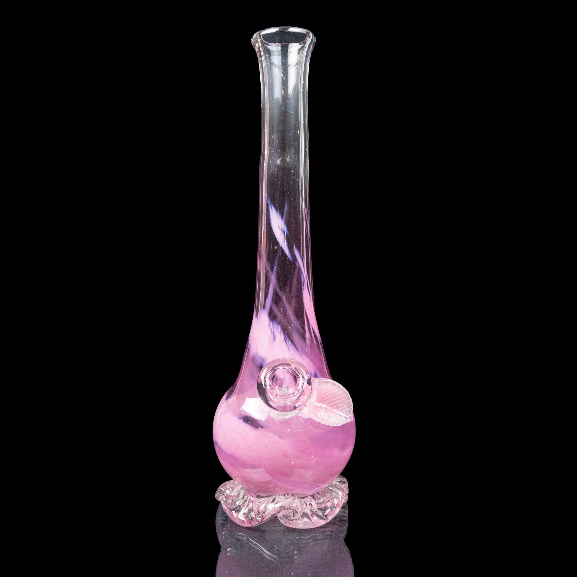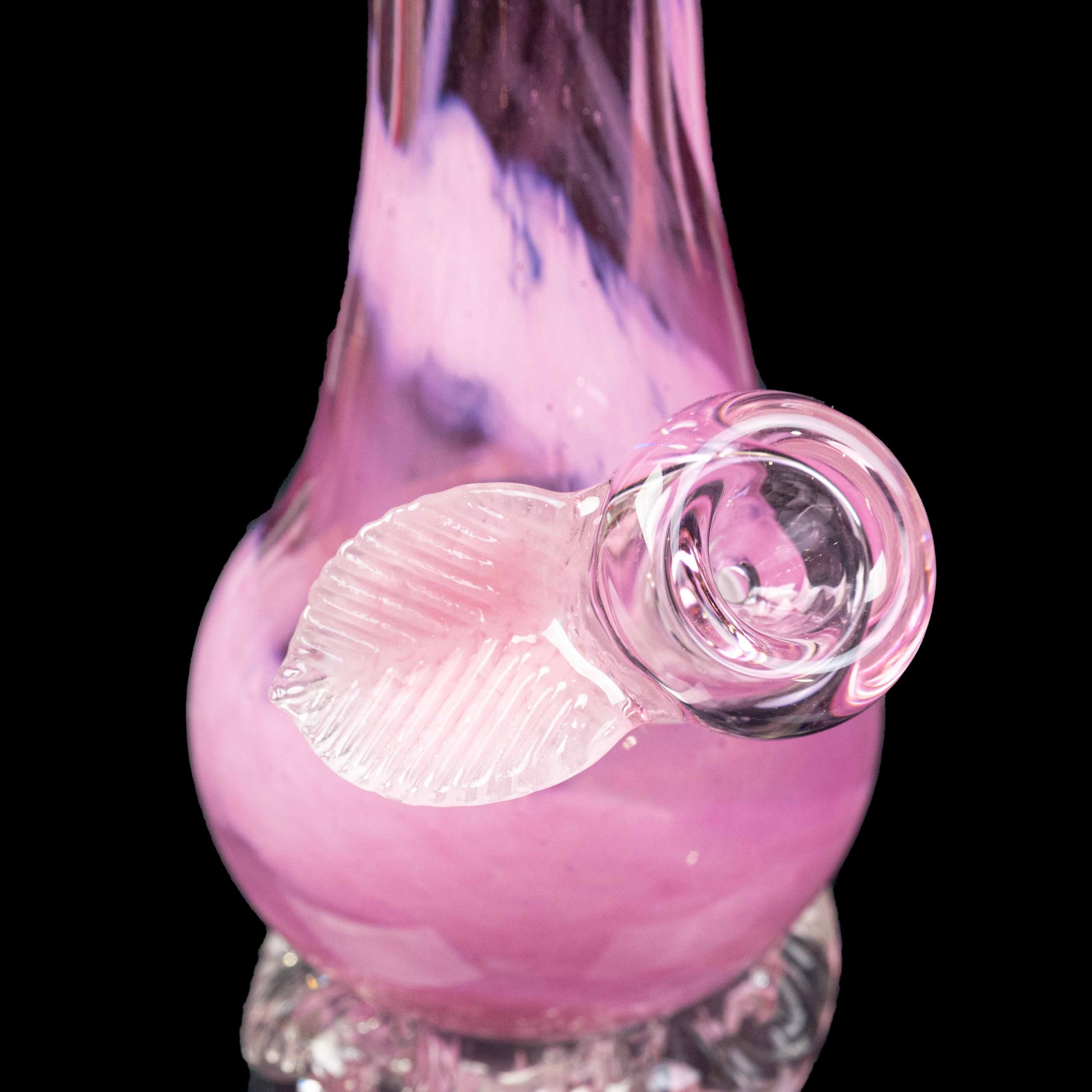 This unique ruby and white bong features a clear optic-reflection foot, and a color fade up the neck so you can see your smoke milking as it rises! It includes a premium pink leaf handle bowl ($35 value)